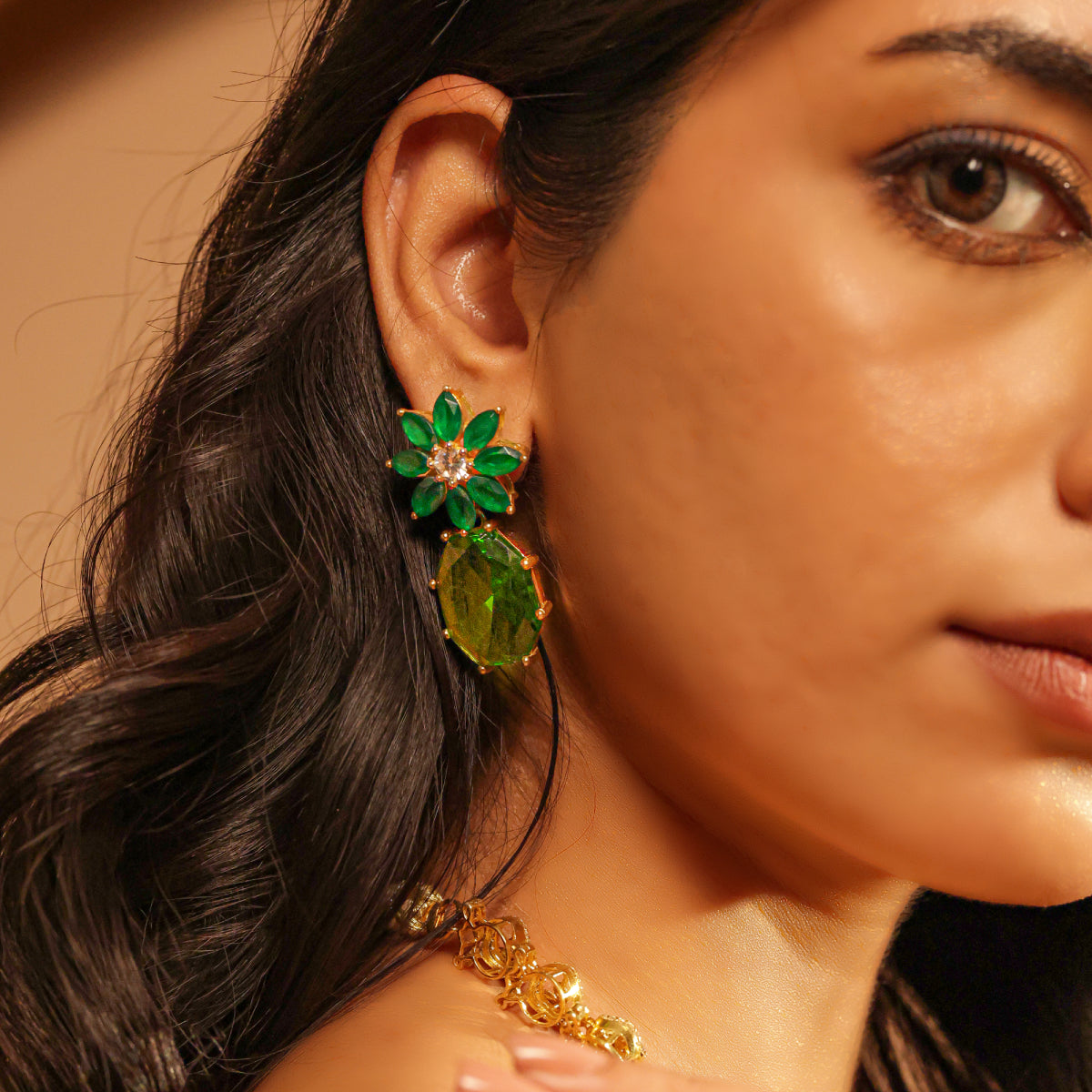 Elegant drop earrings with organic design elements and fine detailing, blending heritage artistry with modern sophistication for bridal and festive wear.